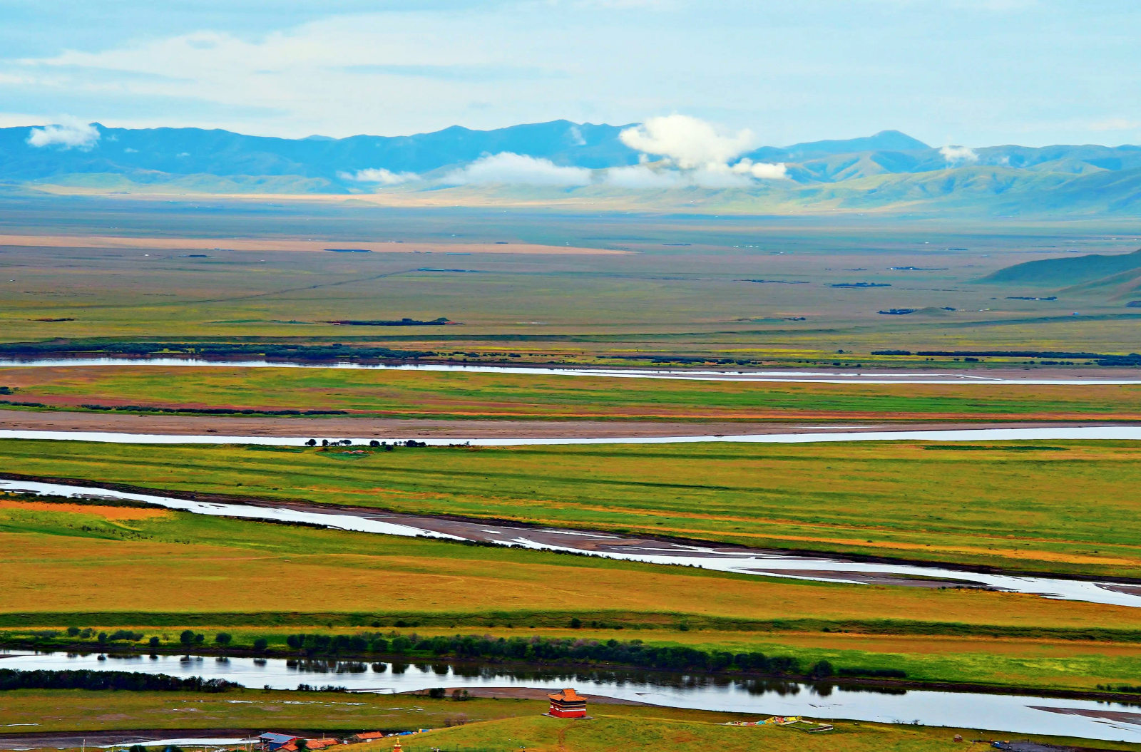루얼까이로 이동 후 화호(花湖) 탐방 - 티베트 초원의 심장부에 있는 습지호수로, 초원 위에 핀 야생화와 물새들이 만들어내는 평화로운 풍경이 압권입니다.