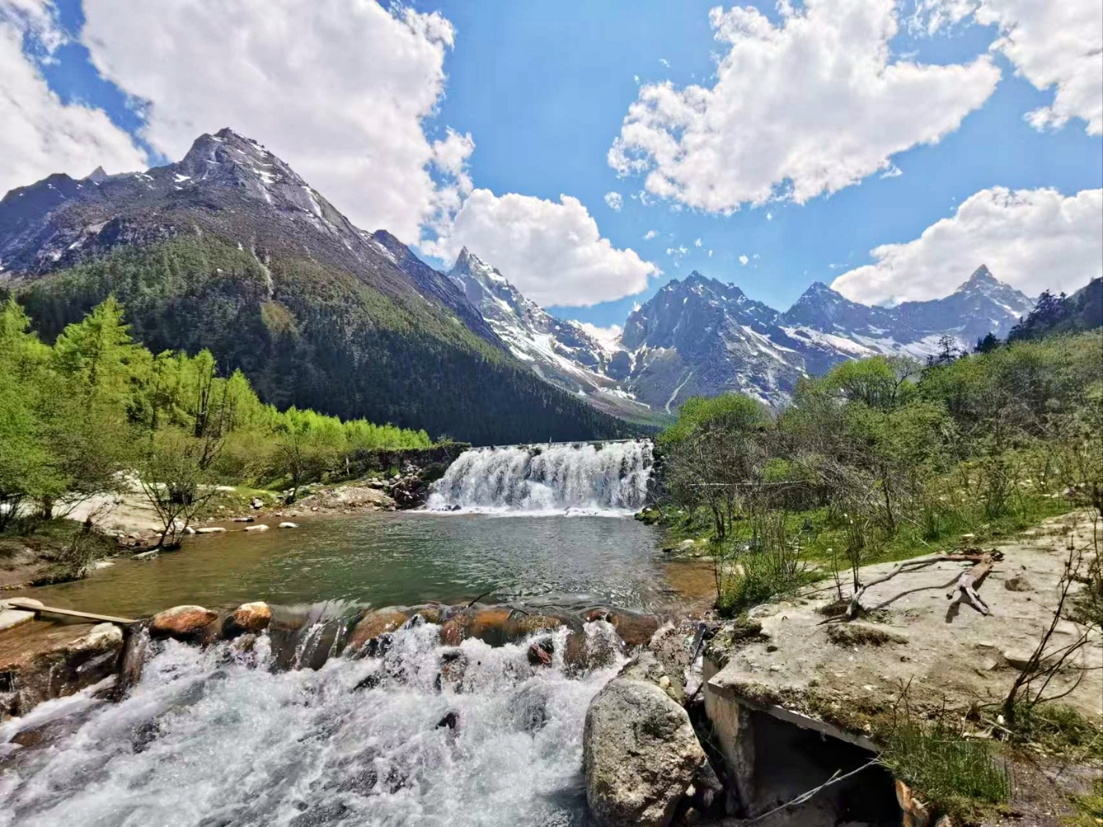 이동 중 사천성 혐곡에 사는 강족 마을과 자연풍경을 감상합니다.